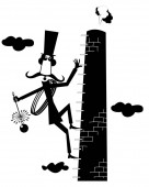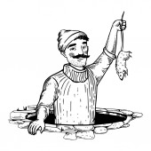 Baron Munchausen wyciąga się za włosy ze szkicu o grawerowaniu wektorów bagien. Projekt druku odzieży T-shirt. Imitacja deski do drapania. Czarno-biały ręcznie rysowany obraz.