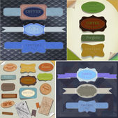 zestaw taśmy retro wektor, stary brudny papier tekstury i wzór etykiety, banery i herby. kolekcja elementów projektu.