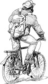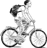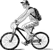 Ręczny rysunek zwykłego mieszczucha na spacerze na rowerze