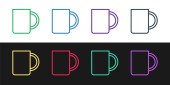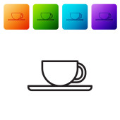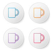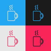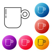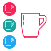 Czerwona linia Kawa filiżanka ikona izolowane na białym tle. Filiżanka. Gorąca kawa. Ustaw ikony w przyciskach koła. Ilustracja wektora