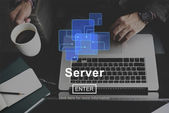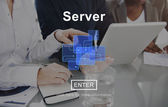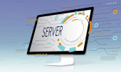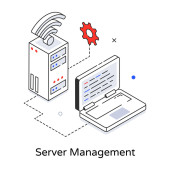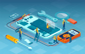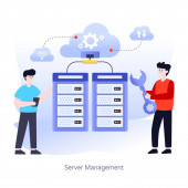 Isometryczny wektor sieci serwerów i personelu technicznego