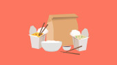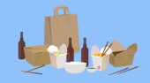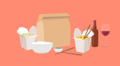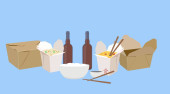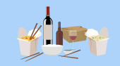 Wektor Isolated Ilustracja chińskiej żywności Take Away, z wina i piwa