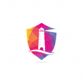 Zdjęcie "Projektowanie logo wektora tarczy latarni morskiej. Fale Latarnia morska ikona logo projekt wektor szablon ilustracja." może być wykorzystywane do celów osobistych i komercyjnych zgodnie z warunkami zakupionej licencji Royalty-free. Obraz jest dostępny do pobrania w jakości wysokiej rozdzielczości do 5760x3840.