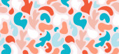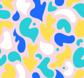 Kolaż sztuki współczesnej o wielokolorowych abstrakcyjnych kształtach. Wektor bezszwowy wzór z nowoczesnymi skandynawskimi elementami wycinanymi. EPS 10