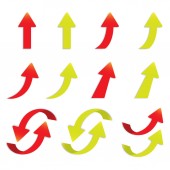 Zestaw strzałek 3D w kolorze pomarańczowym i beżowym.