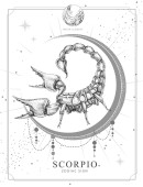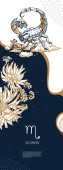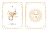 Karty Znaków Zodiaku. Zodiakalne tło. Konstelacja Skorpiona. Styl antyczny.