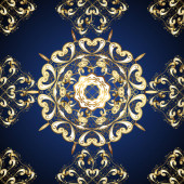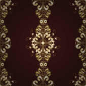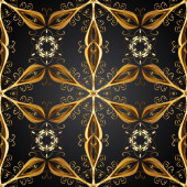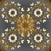 Bez szwu królewski luksusowy złoty barokowy damask vintage. Wektor bezszwowy wzór ze złotym antycznym kwiatowym średniowiecznym zdobieniem, liśćmi i złotym wzorem ozdoby na szarym i brązowym kolorze.