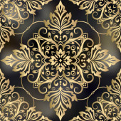 Zdjęcie "Bez szwu królewski luksusowy złoty barokowy damask vintage. Wektor bezszwowy wzór ze złotym antycznym kwiatowym średniowiecznym zdobieniem, liśćmi i złotym wzorem ozdoby na szarym i brązowym kolorze." może być wykorzystywane do celów osobistych i komercyjnych zgodnie z warunkami zakupionej licencji Royalty-free. Obraz jest dostępny do pobrania w jakości wysokiej rozdzielczości do 5760x3840.
