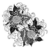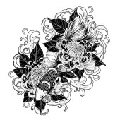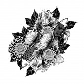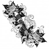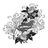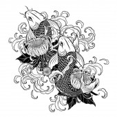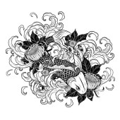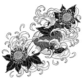 Ryby Koi z tatuażem kwiat ręcznie rysować.Tatuaż sztuki bardzo szczegółowo w stylu sztuki linii.