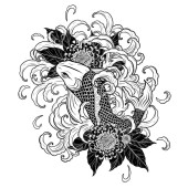 Zdjęcie "Ryby Koi z tatuażem kwiat ręcznie rysować.Tatuaż sztuki bardzo szczegółowo w stylu sztuki linii." może być wykorzystywane do celów osobistych i komercyjnych zgodnie z warunkami zakupionej licencji Royalty-free. Obraz jest dostępny do pobrania w jakości wysokiej rozdzielczości do 5760x3840.