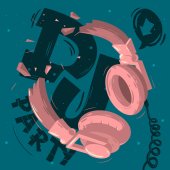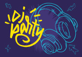 Dj Party ręczne litery ilustracje wektorowe zestaw wzorów.