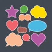 Zestaw kreskówkowych baniek mowy na białym tle. Ilustracja wektora.