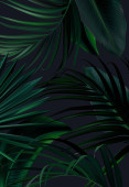 Letnia ilustracja wektora. Projektowanie pocztówek, tapet, cyfrowych, stron internetowych i mediów społecznościowych. Tło liści dżungli.