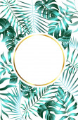 Letnia ilustracja wektora. Projektowanie pocztówek, tapet, cyfrowych, stron internetowych i mediów społecznościowych. Tło liści dżungli.