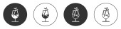 Czarna szklana ikona Martini odizolowana na białym tle. Ikona koktajlu. Ikona kieliszka wina. Okrągły przycisk. Ilustracja wektora