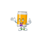 Kreskówkowy wizerunek puszki piwa jako postaci kelnera gotowy do służby. Ilustracja wektora