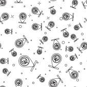 Czarna linia Usuń ikonę koszyka zakupów odizolowany bezszwowy wzór na białym tle. Koncepcja zakupów online. Dostawa. Kosz supermarketów i znak X. Ilustracja wektora