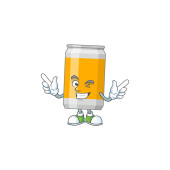 Piwo może kreskówki styl projektowania znaków z czerwonym palcem pianki. Ilustracja wektora