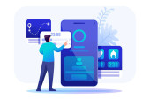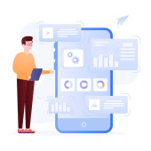 Zdjęcie "Człowiek pracuje nad aplikacją mobilną do gromadzenia danych. Płaska postać 2D. Koncepcja projektowania stron internetowych" może być wykorzystywane do celów osobistych i komercyjnych zgodnie z warunkami zakupionej licencji Royalty-free. Obraz jest dostępny do pobrania w jakości wysokiej rozdzielczości do 5760x3840.