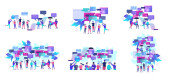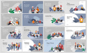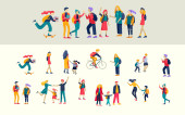 Mężczyźni i kobiety jako turyści kempingowi. Ikony weekendowe kempingu. Obiekt turystyczny i kempingowy. Wektor kemping płaska ilustracja