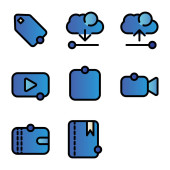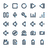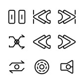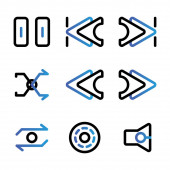 Zdjęcie "Zestaw ikon muzycznych i multimedialnych obejmuje głośność, dźwięk, muzykę, wyciszenie, skip, start, odtwarzacz audio, koniec, odtwarzanie, słuchawki, słuchawki, stop, kwadrat, nagrywanie, głośnik, audio, ulubione, miłość" może być wykorzystywane do celów osobistych i komercyjnych zgodnie z warunkami zakupionej licencji Royalty-free. Obraz jest dostępny do pobrania w jakości wysokiej rozdzielczości do 5760x3840.