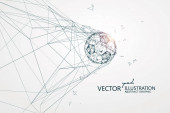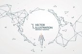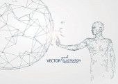 Człowiek z otwartymi ramionami stoi na ziemi, konceptualny projekt graficzny.