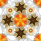 Zdjęcie "Luksusowa ozdoba na tapetę, zaproszenie, opakowanie lub tekstylia. Królewski pomarańczowy, brązowy i beżowy wzór bez szwu. Ilustracja wektora." może być wykorzystywane do celów osobistych i komercyjnych zgodnie z warunkami zakupionej licencji Royalty-free. Obraz jest dostępny do pobrania w jakości wysokiej rozdzielczości do 5760x3840.
