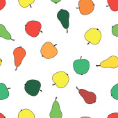 Płynny wzór gruszek. Ilustracja wektora na białym tle.