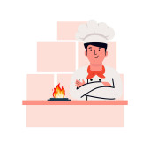 ludzie szef kuchni płaski wektor ilustracja gotowanie