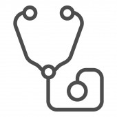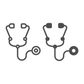 Stetoskop cienka ikona linii, koncepcja opieki zdrowotnej, instrument medyczny do słuchania bicia serca lub znak oddychania na białym tle, ikona stetoskopu w zarysie stylu dla telefonów komórkowych. Grafika wektorowa.