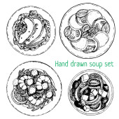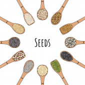 Zestaw opakowań zbóż, ziaren, orzechów na półce do przechowywania w kuchni. Ręcznie rysowany wektor ilustracji. Izolacja na białym tle.