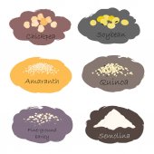 Zdjęcie "Zestaw opakowań zbóż, ziaren, orzechów na półce do przechowywania w kuchni. Ręcznie rysowany wektor ilustracji. Izolacja na białym tle." może być wykorzystywane do celów osobistych i komercyjnych zgodnie z warunkami zakupionej licencji Royalty-free. Obraz jest dostępny do pobrania w jakości wysokiej rozdzielczości do 5760x3840.