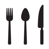 ?zestaw utlarni: widelec, nóż i łyżka. Wektor płaskie czarne ikony izolowane na białym tle.