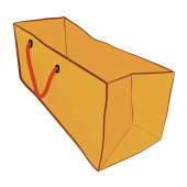 Prosty wektor ręcznie rysować szkic papierowej torby z żółtą liną, izolowane na tle