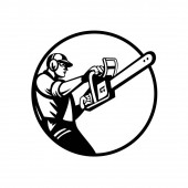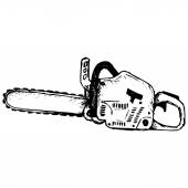 Retro czarno-biały styl ilustracja piły łańcuchowej oglądanej z boku na odosobnionym tle.