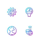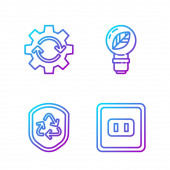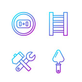 Zestaw linii Piła tarczowa, wtyczka elektryczna, przekładnia i konstrukcja ruletki. Ikony kolorów gradientu. Wektor.