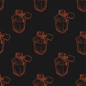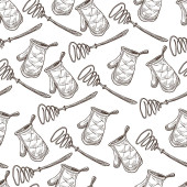 Gałąź oliwek z liści i jagód bezszwowy wzór, olej w butelce. Pielęgnacja skóry i włosów, rośliny stosowane w kosmetykach lub potrawach gotowania. Naturalny składnik. Zarys szkicu monochromatycznego, wektor płaski