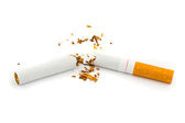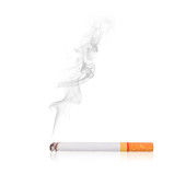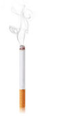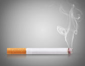 Realistyczne oparzenia papierosa z dymem na szarym tle. Brak ilustracji palenia