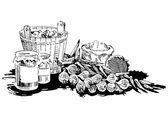 Zdjęcie "Kawałek warzyw. Czarno-biały rysunek atramentu" może być wykorzystywane do celów osobistych i komercyjnych zgodnie z warunkami zakupionej licencji Royalty-free. Obraz jest dostępny do pobrania w jakości wysokiej rozdzielczości do 5760x3840.