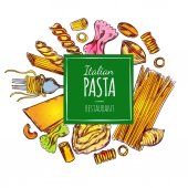 Makaron Baner szablon, Tradycyjne dania kuchni włoskiej, Menu żywności, Restauracja, Cafe Flyer, Karta, Biznes Promować ręcznie rysowane wektor Ilustracja