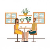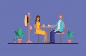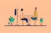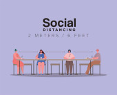 Odległość społeczna między kobietą a mężczyzną na stole z wektorem kawy
