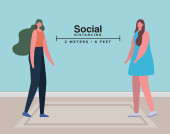 Oddalenie społeczne kobiety z roślinami wewnątrz garnków konstrukcja wektorowa