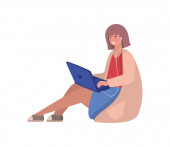Oddalenie społeczne kreskówki dziewczyny przy projektowaniu wektora stołu