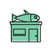 Zdjęcie "Ikona sklepu Green Seafood na niebieskim tle. Fasada rynku owoców morza. Abstrakcyjne kółko przypadkowych kropek. Wektor.." może być wykorzystywane do celów osobistych i komercyjnych zgodnie z warunkami zakupionej licencji Royalty-free. Obraz jest dostępny do pobrania w jakości wysokiej rozdzielczości do 5760x3840.