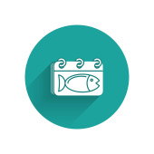 Ikona sklepu Green Seafood na niebieskim tle. Fasada rynku owoców morza. Abstrakcyjne kółko przypadkowych kropek. Wektor..