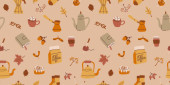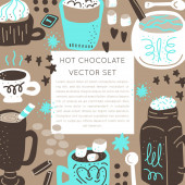 Gorąca czekolada i kolekcja kakao ręcznie rysowane elementy wektorowe. Płynny wzór. Elementy wektorowe ręcznie rysowane. Tło sylwetki.