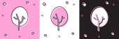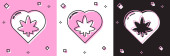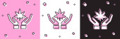 Zestaw ikona liści izolowane na różowym i białym, czarne tło. Świeży naturalny symbol produktu. Wektor.