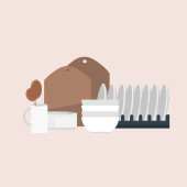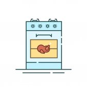 kuchnia piec linia ikona piekarnik z pieczonym indykiem wewnątrz koncepcji urządzenia gospodarstwa domowego
