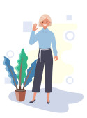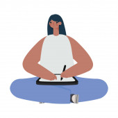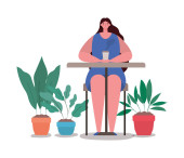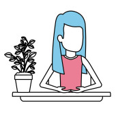 Avatar kobieta z kubkiem kawy na stole wektor projektu