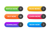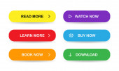 Zestaw wektorowe nowoczesne guziki stylu materiału. Różne gradientowe kolory i ikony na białych formach z cieniami.